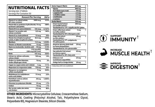 Multivitamins are dietary supplements that contain a combination of essential vitamins and minerals. They are designed to supplement the nutrients that may be lacking in a person's diet and help ensure they meet their daily recommended intake of these vital micronutrients. Musclebull Nutrition offers multivitamins from reputable brands that undergo third-party testing for quality and purity.